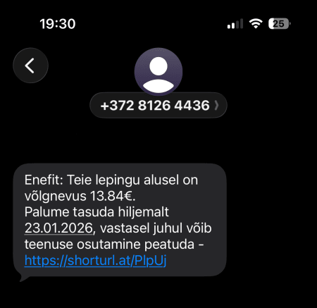 Oleme saanud vihjeid, et hetkel levib Enefiti võlateate sõnumiga petuskeem, mille eesmärk on juhatada inimesi õngitsuslehele. Tegemist on pettusega ja palume sõnumis olevale lingile mitte klikkida! Oma arvete ning saldo kontrollimiseks soovitame kasutada Enefiti iseteenindust.