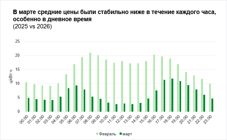 Обзор энергетического рынка: более теплая погода в марте привела к значительному снижению цен на электроэнергию